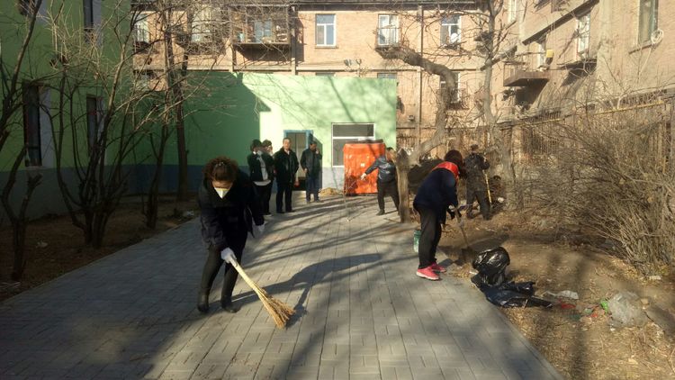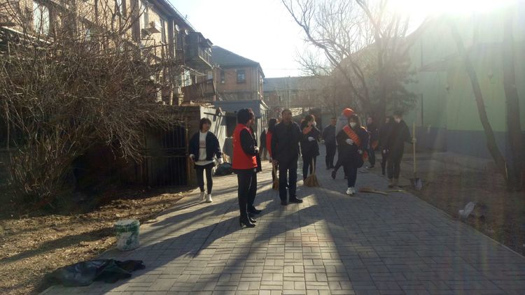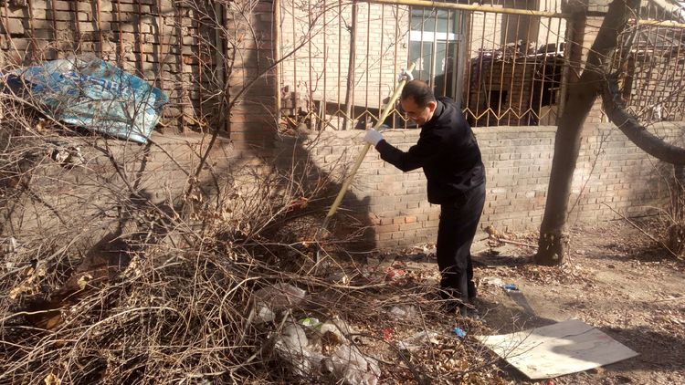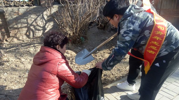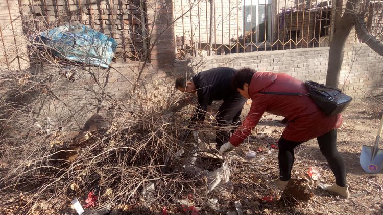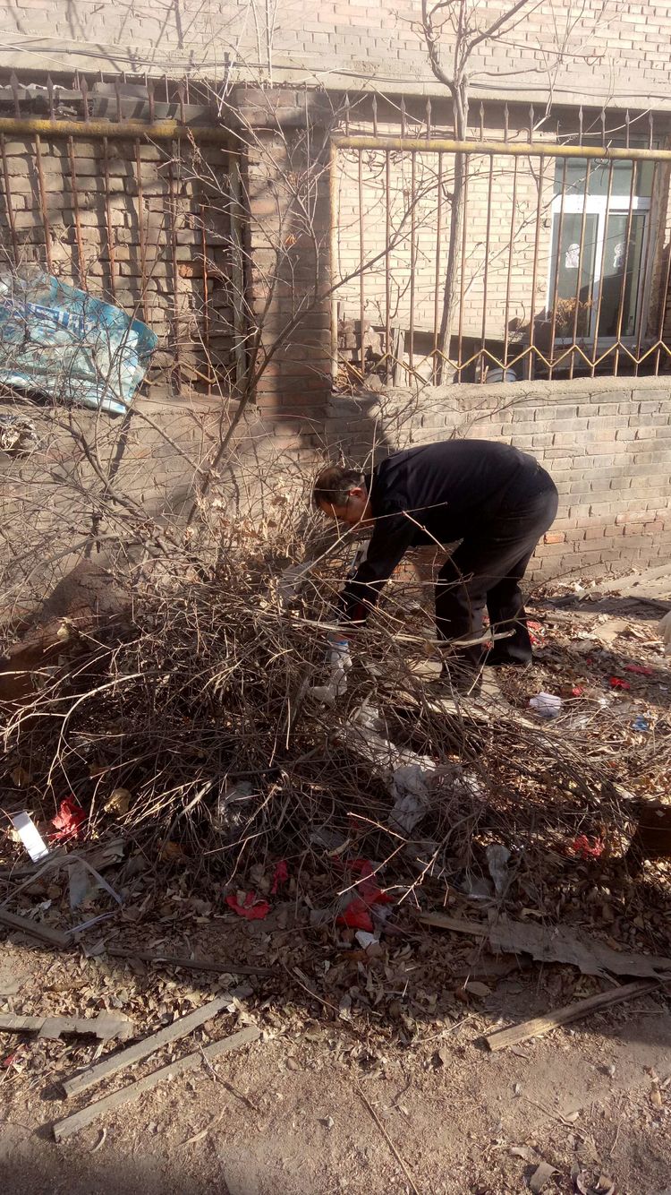 看安馨養(yǎng)老服務(wù)中心后院里參加清掃衛(wèi)生的青年團(tuán)員志愿?jìng)兡弥灾?、鐵鍬、鋸等用具。開(kāi)始了緊張的忙碌,鋸枯樹(shù)枝的,清掃院落的,清倒垃圾的,大家分工合作,經(jīng)過(guò)了一上午的清掃整理,整個(gè)院落更加的干凈整潔了。