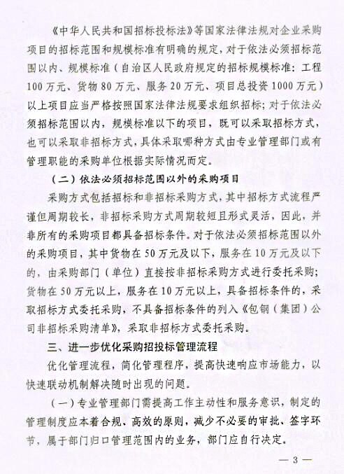關(guān)于印發(fā)《包鋼(集團)公司關(guān)于進一步強化采購招投標管理實施辦法(試行)》的通知