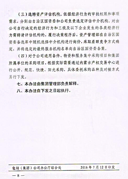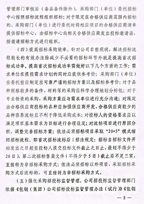 下一條:關(guān)于印發(fā)《包鋼(集團)公司關(guān)于進一步強化采購招投標管理實施辦法(試行)》的通知